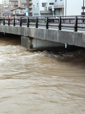 本校前の伏見川も急激に増水し、危険な状況になりました(写真は10時過ぎの伏見川)。
