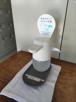 生徒玄関にアルコールディスペンサー(自動手指消毒器)を置きました。