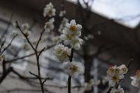 今日は、梅園の白梅の枝に鶯が二羽訪れて戯れていました。