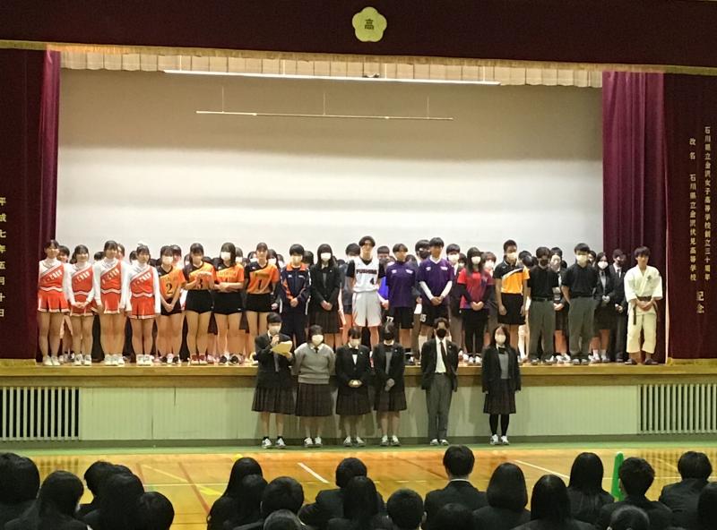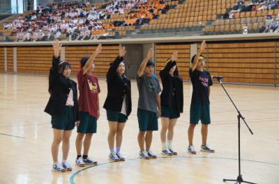 第一体育館にて全国大会に出場する生徒と野球部県大会出場の激励会が開かれました。