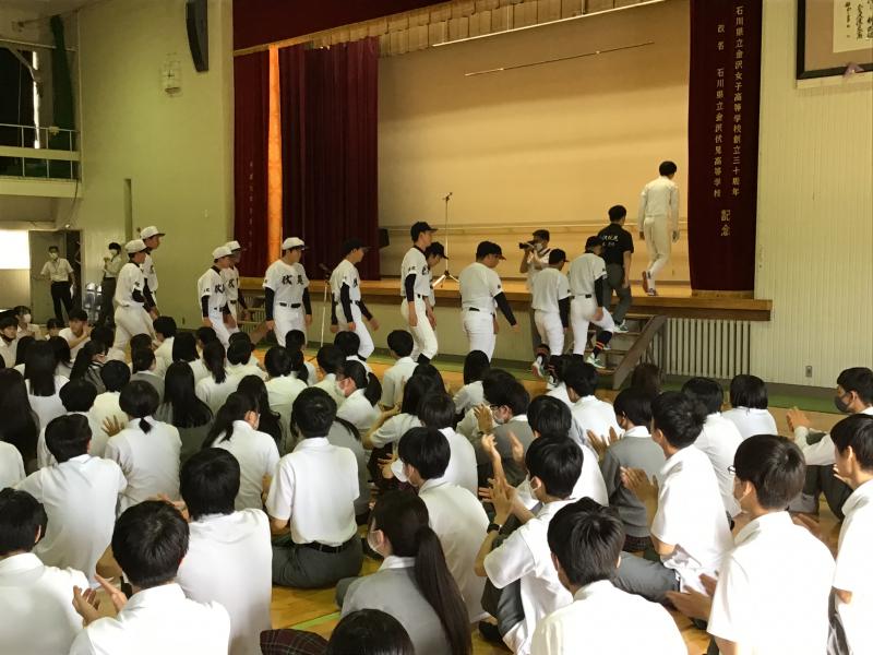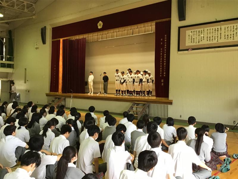 全国高校野球石川県大会に出場する野球部を代表し、主将35H高堂さんから
