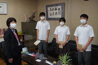 校長室で同窓会とPTAからの激励費が手渡されました。