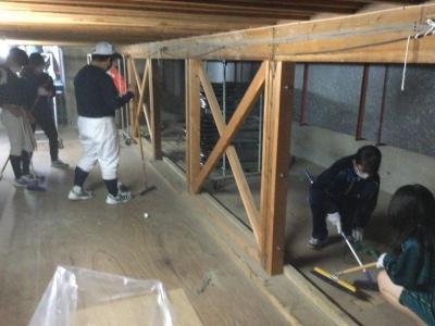 体育館のステージ下と女子更衣室の清掃を行いました。