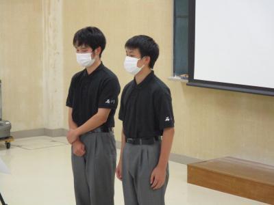 昨年同様、各部の代表が視聴覚室に集まり、その様子を教室へ中継するという方法で行いました。
