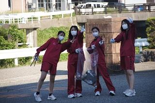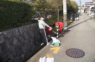 約40名の生徒が参加し、3班に分かれて伏見川沿いの道路と、学校周辺のごみ拾いを行いました。