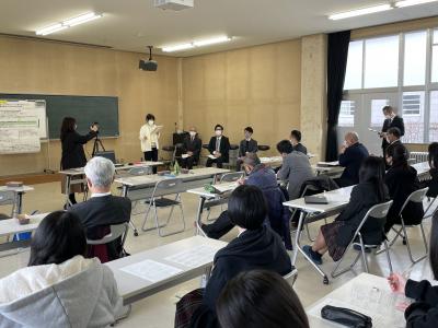 今回の最終発表会は、本校探究アドバイザーの方々(シンクタンク未来教育ビジョン代表の鈴木敏恵氏、金沢工業大学の篠田昌久氏、渡辺秀治氏、山岡英孝氏、ベネッセの福澤広隆氏)に加え、学校評議員の方々にもご来校いただき、発表に対して質問や貴重なご助言をいただきました。