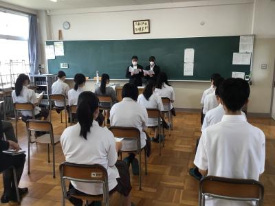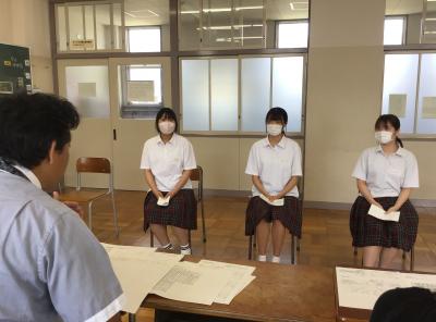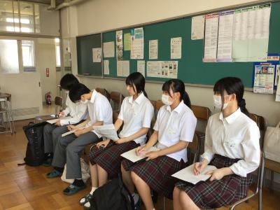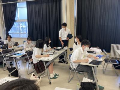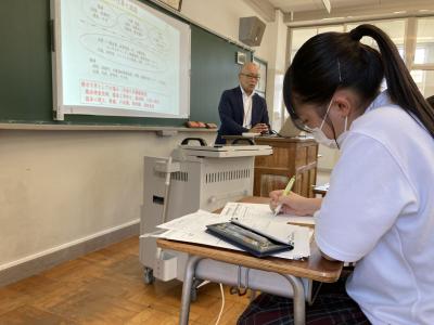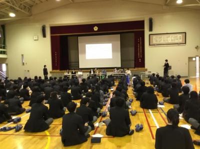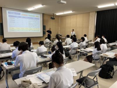 1年生は2学年に進級したときに向けて文理選択を考えていく時期です。今回の講演の中でお話ししていただきました職業や学問の見方や考え方を文理選択の参考にしてほしいと思います。