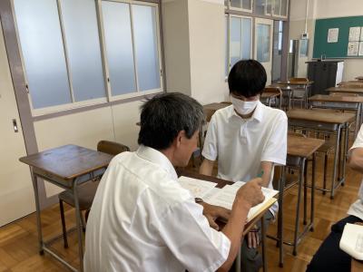 午後からはそれぞれが志望理由書を清書し、石橋講師を含め本校教員による個別添削によって内容をブラッシュアップすることができました。自分の進路や志望校と真摯に向き合い、生徒一人一人が思いや考えを言語化し表現することができました。