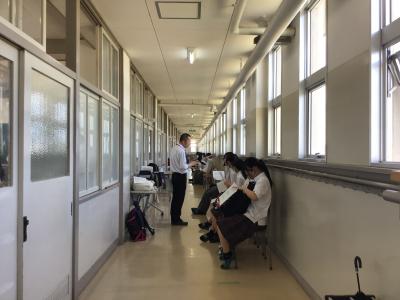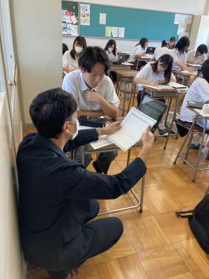 (校内いろいろな場所で指導にあたる石橋講師)