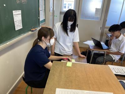第2グループは、1時間目に「面接応答準備講座・指導」を、2時間目に「志望理由書指導」を行いました。
