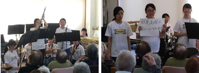 会場からの暖かい拍手とご声援により、生徒たちは日ごろの練習の成果を存分に発揮できました。また、曲の途中の「楽器紹介」や、「伏見高校クイズ」では、皆様のご協力により一体感のある楽しい時間を過ごすことができました。