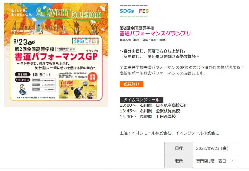 9月23日(金・祝)午後 イオンモール白山にて開催される