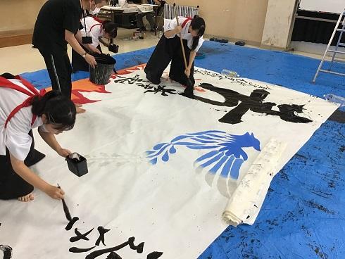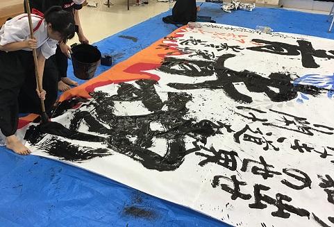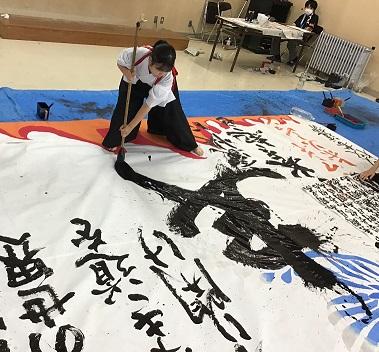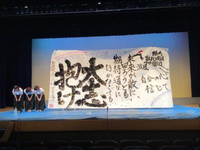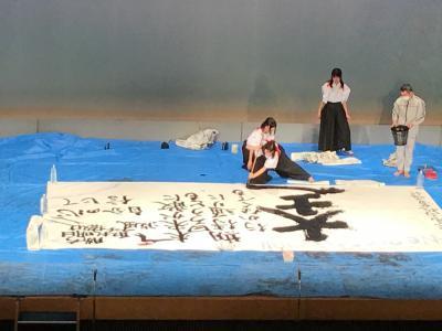本校文化部発表会で「書道パフォーマンス」を行いました。