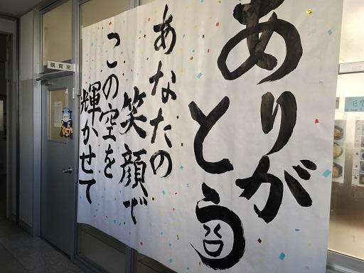 作品は本校1階、学習室-第1体育館の渡り廊下に展示中です。