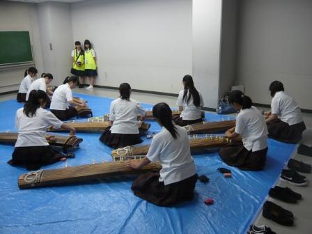 筝曲部は3年生3名、2年生7名、計10名の部員で、本校3階和室にて毎週火曜日活動しています。