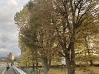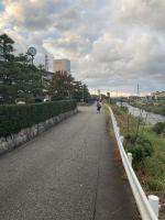 校舎へ続く道や土手の風景もすっかり秋です。 グラウンドにも紅葉した木々が見られます。