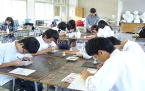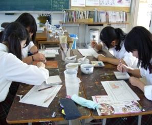 美術部は、毎週火・木・金曜日の放課後、美術の先生のもと専門的な助言、指導を受けながら楽しく活動を行っています。
