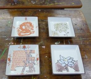 事前に考えてきたデザイン案をもとに、研修所の方にアドバイスをいただきながら上絵付けを進めていきました。