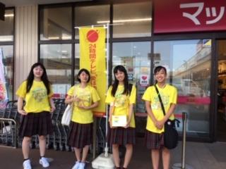 8月25日家庭同好会とJRC部はイオンタウン野々市で、24時間テレビ「愛は地球を救う」街頭募金をしました。暑い中、大声をあげての募金活動でしたが多くの善意が集まり、温かい気持ちになりました。