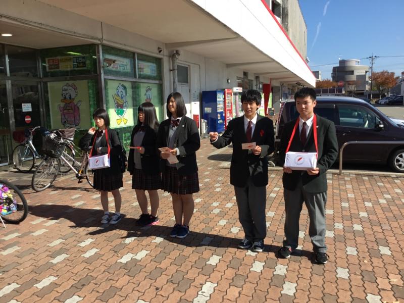 11月10日(金)、学校近くのショッピングセンターで「赤い羽根」の募金活動をしました。募金の呼びかけにたくさんの方が快く応じてくださいました。ありがとうございました。