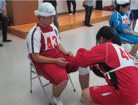 競技種目は、「傷の手当て」と「心肺蘇生法」の2種目です。夏休み中から練習に取り組み、大会1週間前は毎日、より正確な手当を目指して練習を続けました。