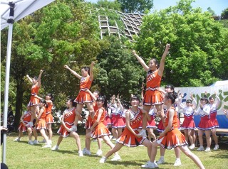 2017年5月21日(日)今年で最後となる「ひろびろ福祉会まつり」のステージに参加しました。1年生にとっては、お客様の前で初めての演技披露で、とても緊張しましたが、元気をいっぱいお届けできるようがんばりました。先輩たちと34人全員で力を合わせてスタンツにも挑戦し、温かい拍手をいただきました。