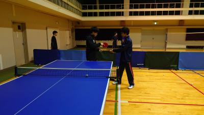 1/14の部活動で、北陸大学卓球部の学生さん2名に来ていただき、技術指導を受けました