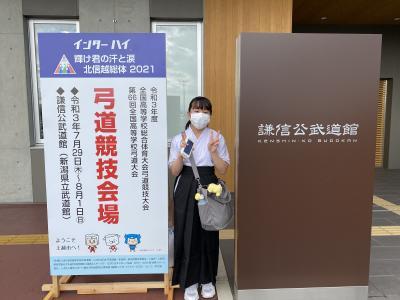7/29(木)に新潟県の謙信公武道館で行われたインターハイに、3年生の八巻遥さんが出場しました。コロナ渦のため無観客で応援がない中でしたが、予選は4射3中で通過し、準決勝に進出。
