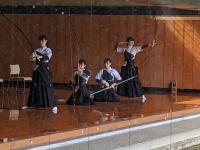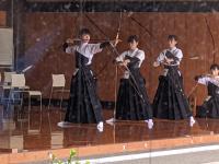 弓道部は男子1名、女子12名の計13名で平日は週4日と土曜日の午前中に稽古をしています。学校敷地内に道場があるため、稽古に集中して取り組める環境です。また、弓道専門の外部指導者から定期的に指導を受けることができ、大会での上位入賞、段位認定試験に合格するなどの結果につながっています。