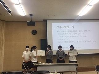 看護師としての資質について学ぶとともに、グループで協力する力やまとめる力、発表する力を育むよい機会となりました。