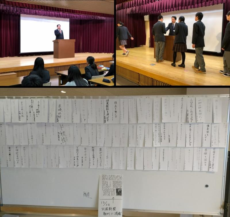 2年生を対象とした古典『大鏡』「花山院の出家」についての本日の授業は、ペアワークを用いた音読や意見交換、学び合いを通して、「だれが、どのような行動をし、そのときの心情はどうだったか」の三点を明確にしながら、本文の展開に迫る内容でした。