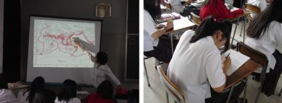 生徒たちは地図を使った作業などを通じて理解を深めていました。