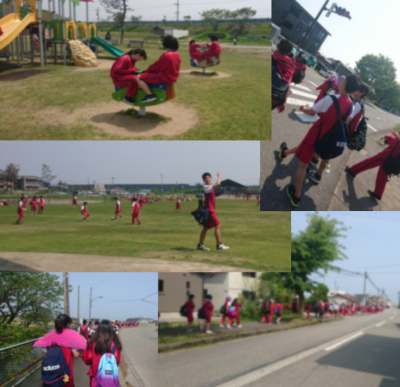 2年生はJR松任駅に集合して松任海浜公園まで歩きました。少し暑かったものの天候に恵まれ、楽しい一日となりました。今日の遠足をきっかけに、新しいクラスに馴染めるといいですね。