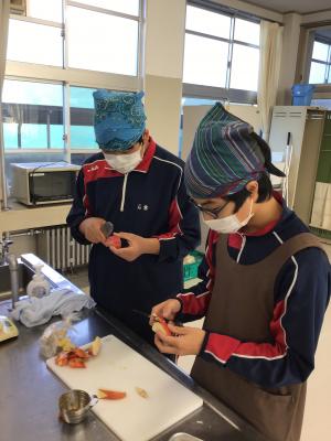 包丁の使い方がおぼつかないながらも、みんな一生懸命頑張っていました。