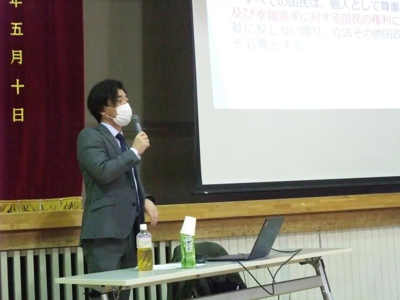 11月14日(火)大手町法律事務所より西野崇彦様をお迎えし、1年生対象の”校外講師による人権教育講話”が開催されました。