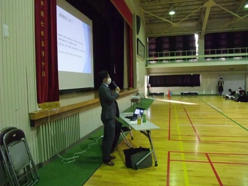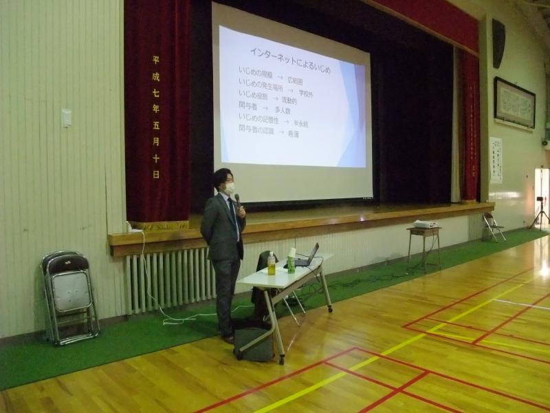 ”人権の歴史”から始まり、法律に基づいたいじめの定義では本人が心身で苦痛を感じたらイジメであるとのお話に、生徒は真剣に耳を傾けていました。