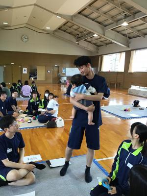 生徒の感想には「子供はかわいくて最高の存在だけど、その分目がはなせないとか子供の体調管理などの大変な部分がたくさんあることがわかった。」「子育てをする上で、子供が外で泣いてしまうなどのどうしようもできない場面に直面することがあると知って、もし自分がその時近くにいたら、温かい目で見て、自分にできることを探したいと思いました。」などこの貴重な体験により、さまざまなことを感じたようです。