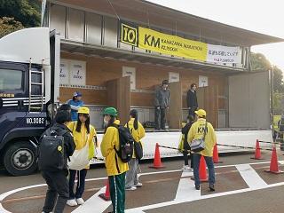 手荷物預かり班は、スタート地点で参加ランナーの荷物を預かり、ゴール地点に運ぶトラックに荷物を積み込みます。12台のトラックの内5台を担当しました。