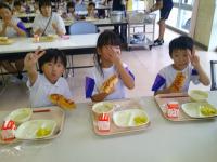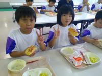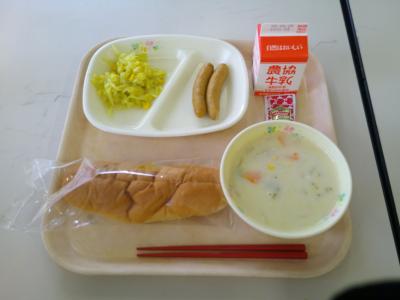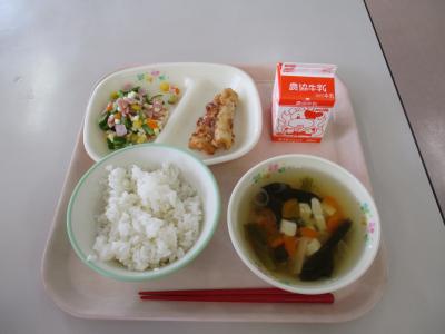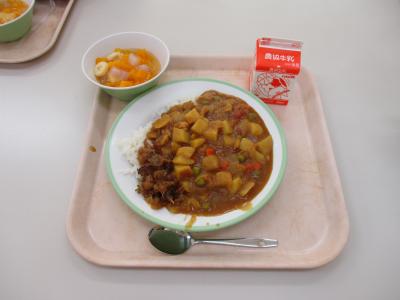今日の給食は、チキンカレーライス、フルーツポンチでした。