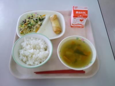 今日の給食は、春巻き、バンバンジー風和え物でした。