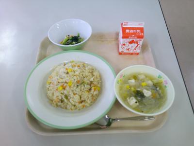 給食当番の児童がこだわって、お店のチャーハンのように丸く盛り付けてくれました。