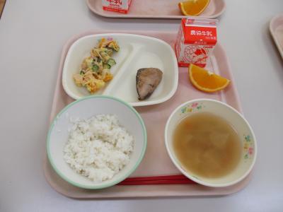 今日の給食は、珠洲産かぼちゃのサラダでした。