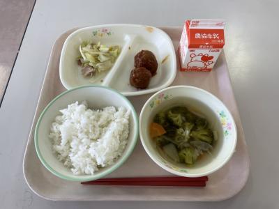 今日の給食は、肉団子でした。