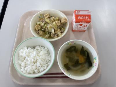 今日の給食は、豚肉と厚揚げのみそ炒めでした。