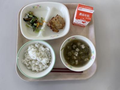 今日の給食は、鶏肉の竜田揚げ焼きでした。