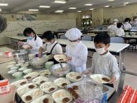 今日は、4~6年生が行事で外に出ていたので、3年生が中心となって給食当番のお仕事をしてくれました。
