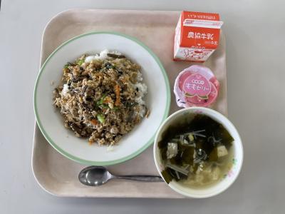 「わかめごはんと五目うどんどちらも好きだから嬉しいけど、楽しみが一気に来るから別々に出してほしい」と話している児童がいました。
