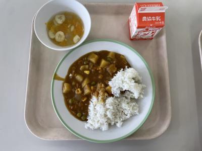 今日の給食は、カレーライス・フルーツポンチでした。