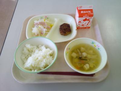 今日の給食は、ハンバーグでした。