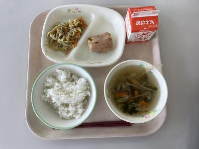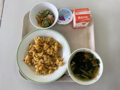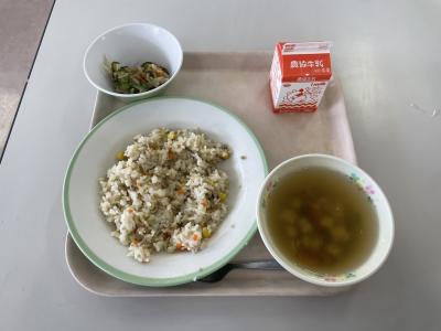 今日の給食は、五目チャーハンでした。